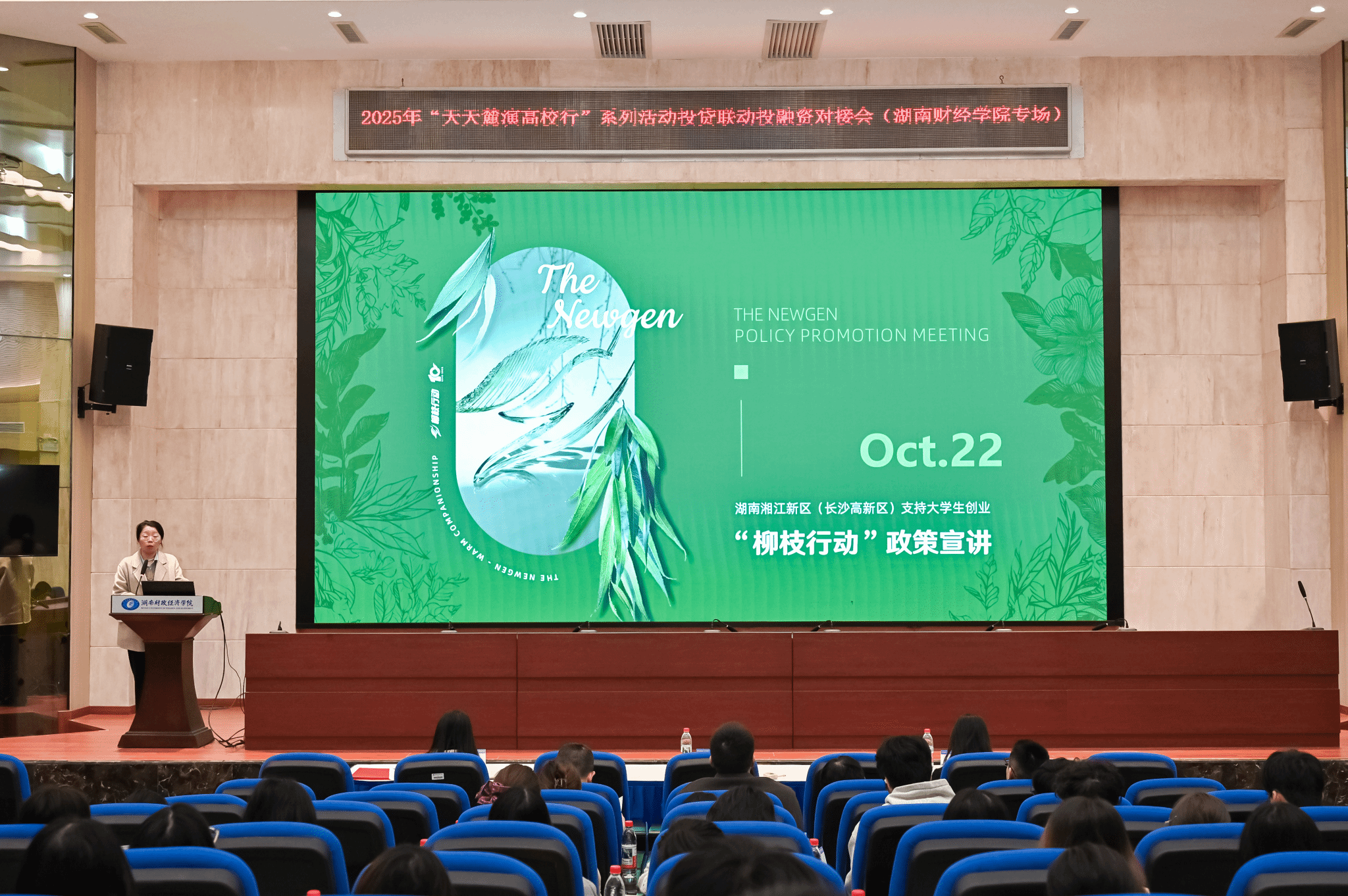 (本网讯)2025年10月22日下午,“智汇麓演,赋能未来”2025年“天天麓演高校行”投贷联动投融资对接会在我校图书馆四楼学术报告厅成功举行。本次活动由湖南湘江新区财政金融局主办,我校创新创业与人工智能学院承办,旨在为优秀大学生创业项目搭建展示与融资平台,深化校地合作,优化区域创新创业生态。