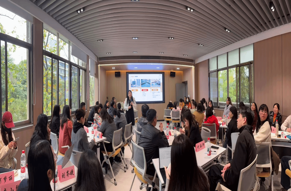 蔡离离老师拥有25年职业规划与创新创业就业教育实战经验,是多项高水平专业竞赛国赛的入库专家,指导学生和企业屡获国家级金奖和一等奖。讲座中,她围绕“人才挖掘”、“赛事分析”、“精制材料”、“技巧应赛”等六大模块展开系统分享。蔡离离老师结合其指导学生参加职业规划大赛等各类竞赛并斩获多项国家级奖项的丰富经验,通过大量详实的案例,深入剖析了职业规划大赛的备赛关键与实战“干货”,为在场教师提供了极具价值的指导策略。在实战指导环节,蔡离离老师带来的两名学生进行了现场项目展示,与会教师积极参与点评,蔡离离老师则针对性地进行了专业剖析和优化指导。这种“现场诊断”式的互动教学,使教师们对竞赛评审标准和指导技巧有了更直观、深刻的理解。