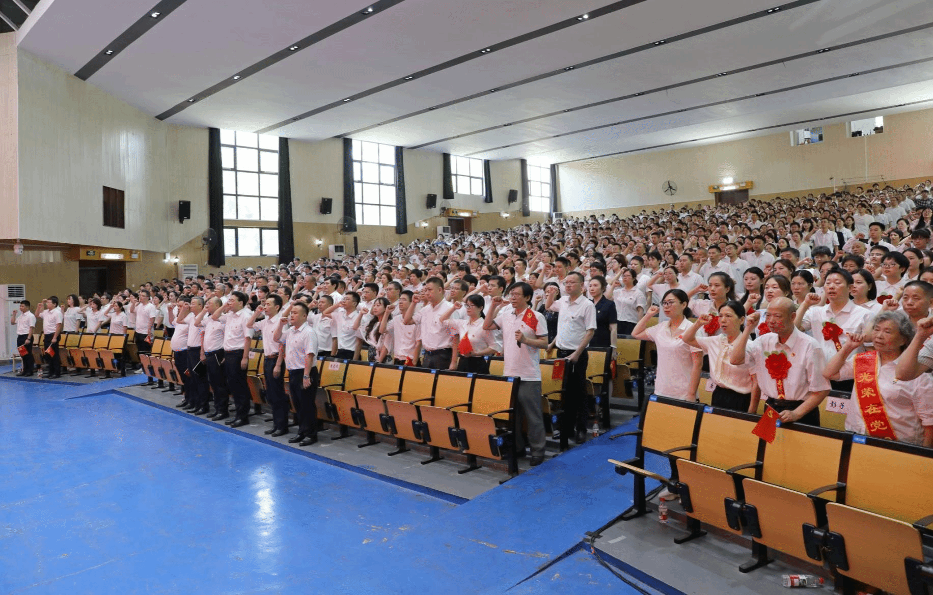 大会在全场师生齐唱《歌唱祖国》《没有共产党就没有新中国》的歌声中结束。