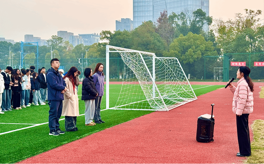 (本网讯)晨光熹微,为进一步厚植爱国主义情怀,凝聚师生奋进力量,引导青年学子将个人理想融入国家发展大局,12月9日清晨,工程管理学院在学校运动场隆重举行第十四周升旗仪式。学院党委副书记刘绿丝、学工办主任袁仕远、全体辅导员,以及24级全体学生和23级专升本全体学生齐聚操场,以庄严的仪式开启新一周的奋斗征程。