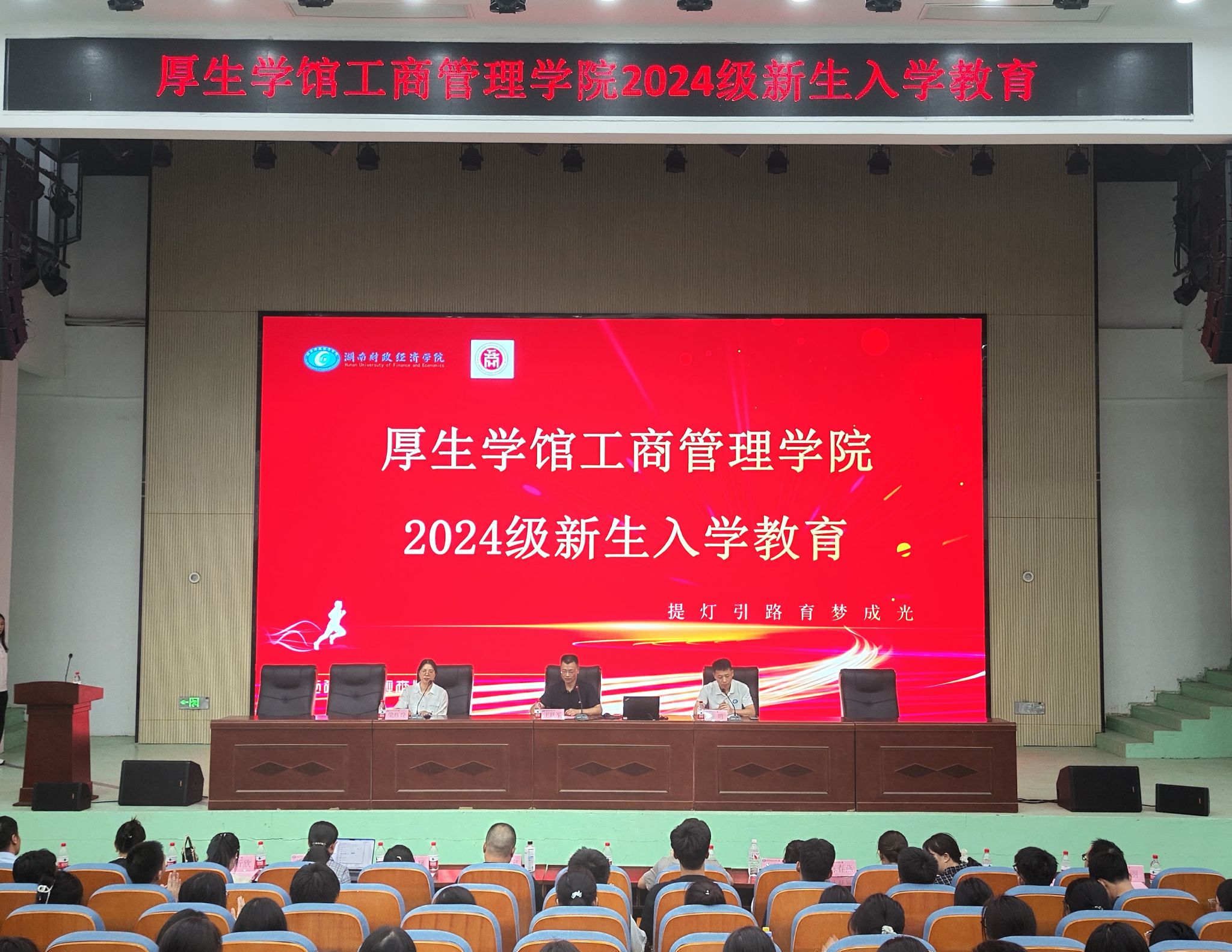 (本网讯)9月14日下午,工商管理学院2024级本科生新生入学教育大会在雷锋学院至诚楼L1114教室召开。院党委书记王跃军主持会议,院长杨鹏、副院长梁辉煌,优秀校友代表,各系负责人、教授代表、教师代表、行政人员代表、优秀学生代表和2024级全体新生参加。