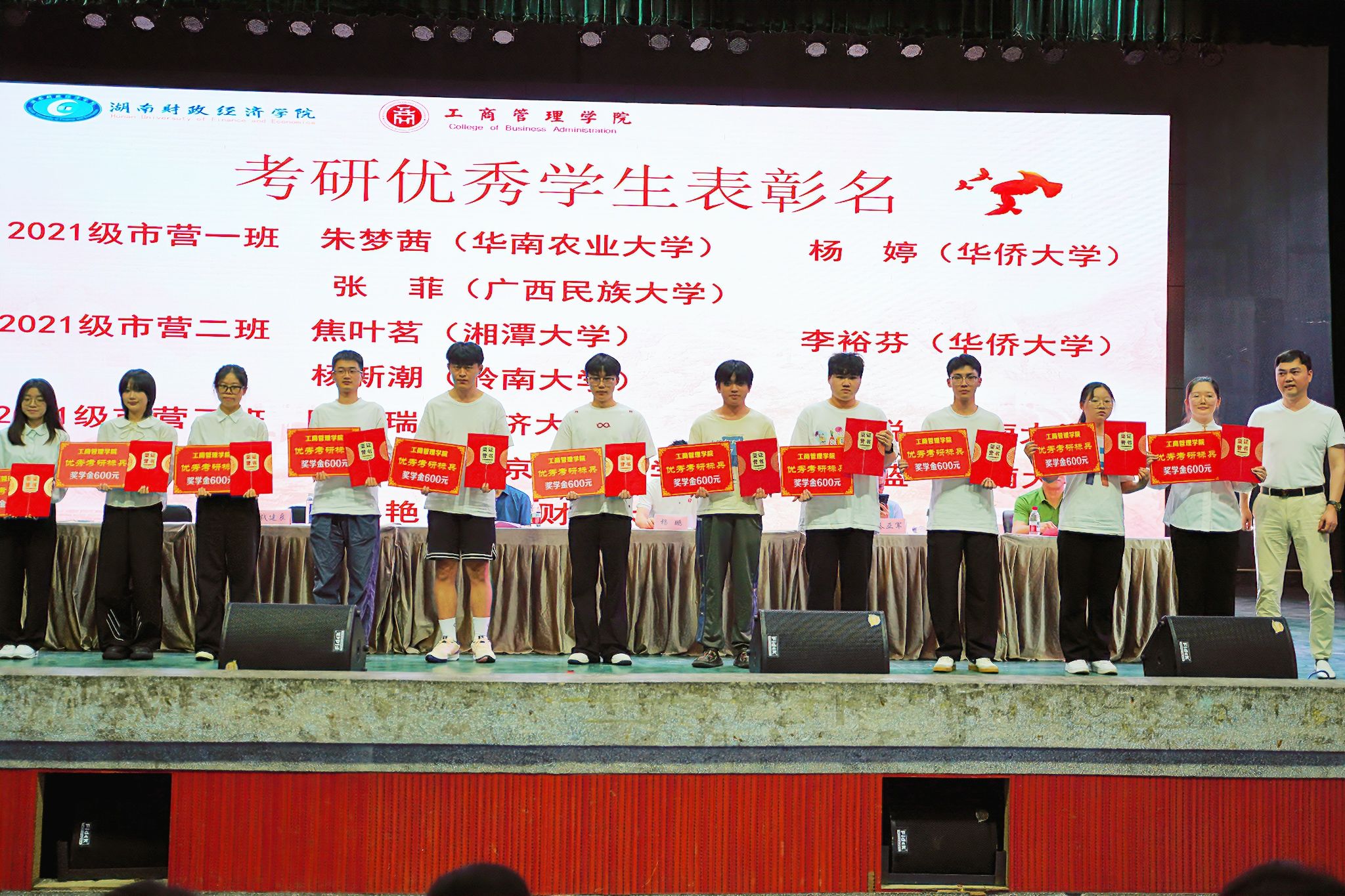 (本网讯)6月15日,工商管理学院首届学生高质量发展动员大会在主校区大礼堂隆重召开。学院党委书记王跃军、院长杨鹏、副院长梁辉煌出席大会,特邀湖南财政经济学院校友会工商管理学院分会名誉会长秦亚军、会长钱建良、常务副会长邓小纯莅临并担任颁奖嘉宾。副院长梁辉煌主持会议。学院各办公室主要负责人及全体辅导员共同参会。