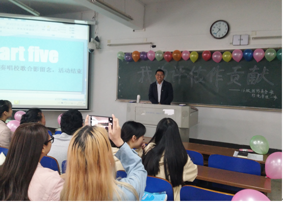 (本网讯)11月6日上午,工商管理学院2016级物流管理一班和国际商务班联合开展了“我为评估作贡献”的主题班会,副校长王焕清出席了此次班会活动。
