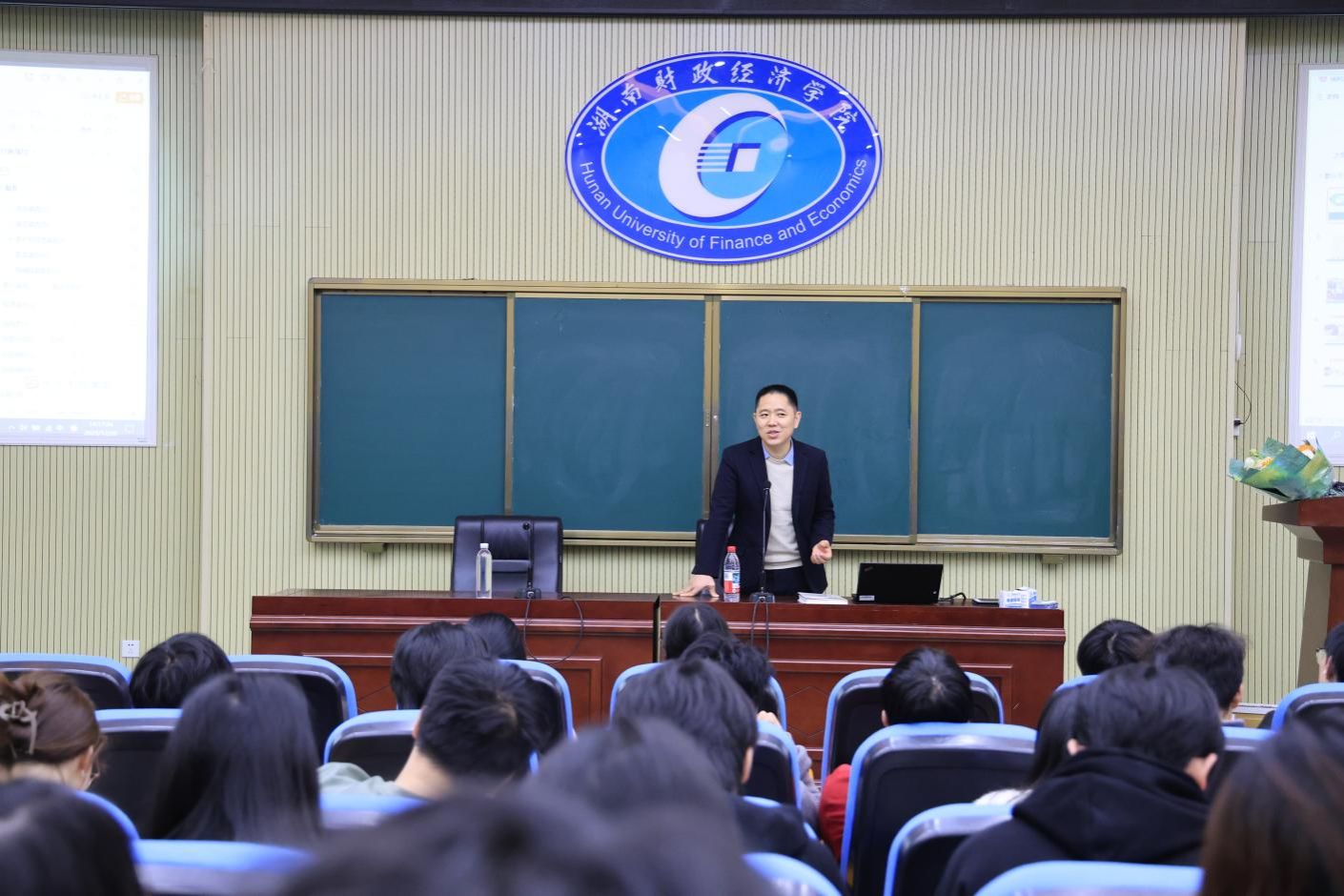 (本网讯)12月20日,湖南财政经济学院工商管理学院于第二教学楼2j02举办管理前沿专题讲座。讲座邀请找广科技有限公司CEO、湖南省电子信息协会产业互联网分会秘书长欧阳宇围绕供应链、物流管理领域作主题演讲。工商管理学院院长杨鹏主持讲座,2023级物流管理专业与供应链管理专业全体学生参加讲座