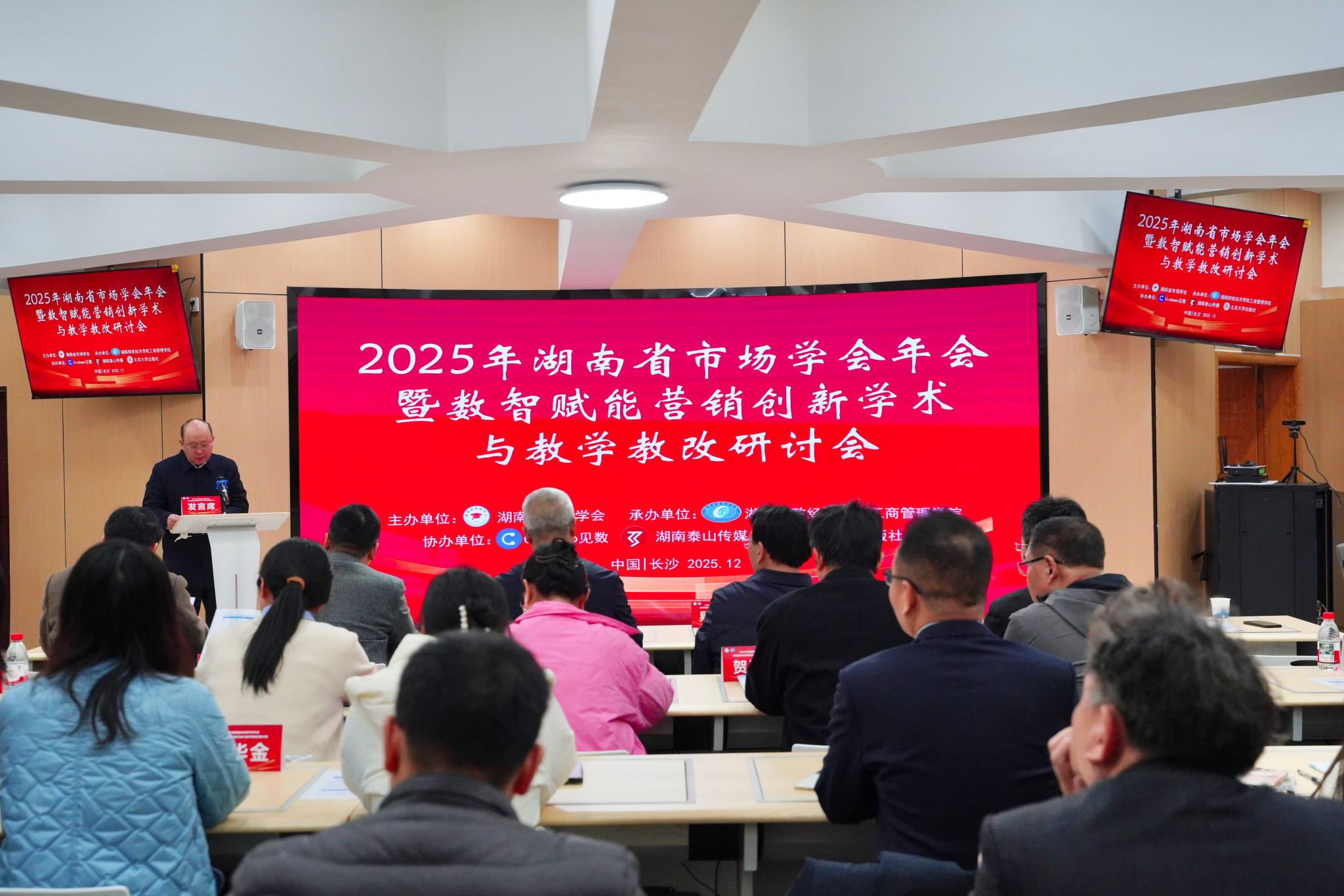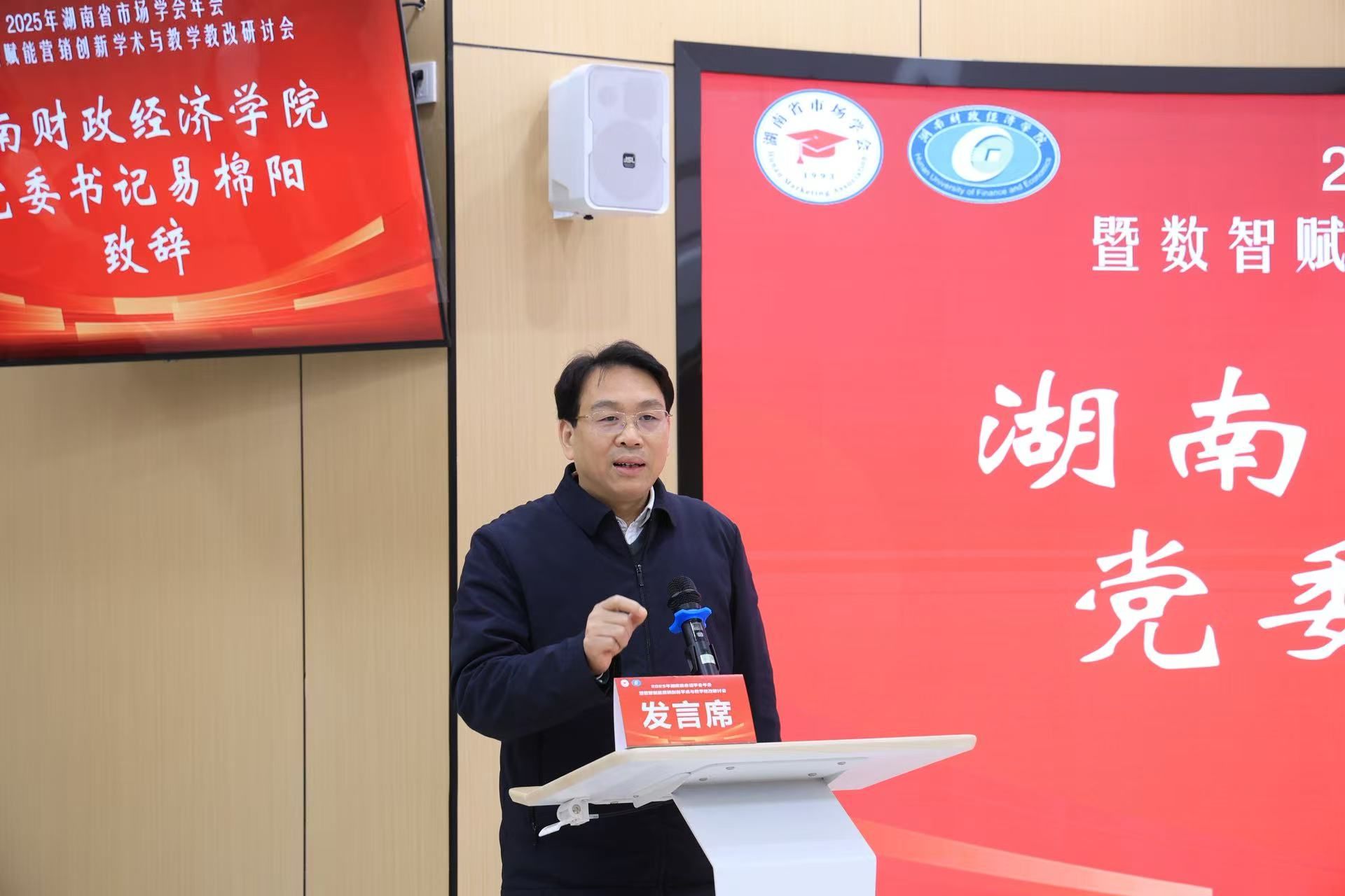 12月27日,由湖南省市场学会主办、湖南财政经济学院承办的“2025年湖南省市场学会年会暨数智赋能营销创新学术与教学教改研讨会”在湖南长沙举行。来自全国30余所高等院校、科研机构、企事业单位的近百位专家学者、一线教师及学生代表共襄盛会,共同探讨数智时代市场营销领域的学术前沿与教学实践革新。校党委书记易棉阳致辞。党委委员、副校长赵鹤平主持开幕式。