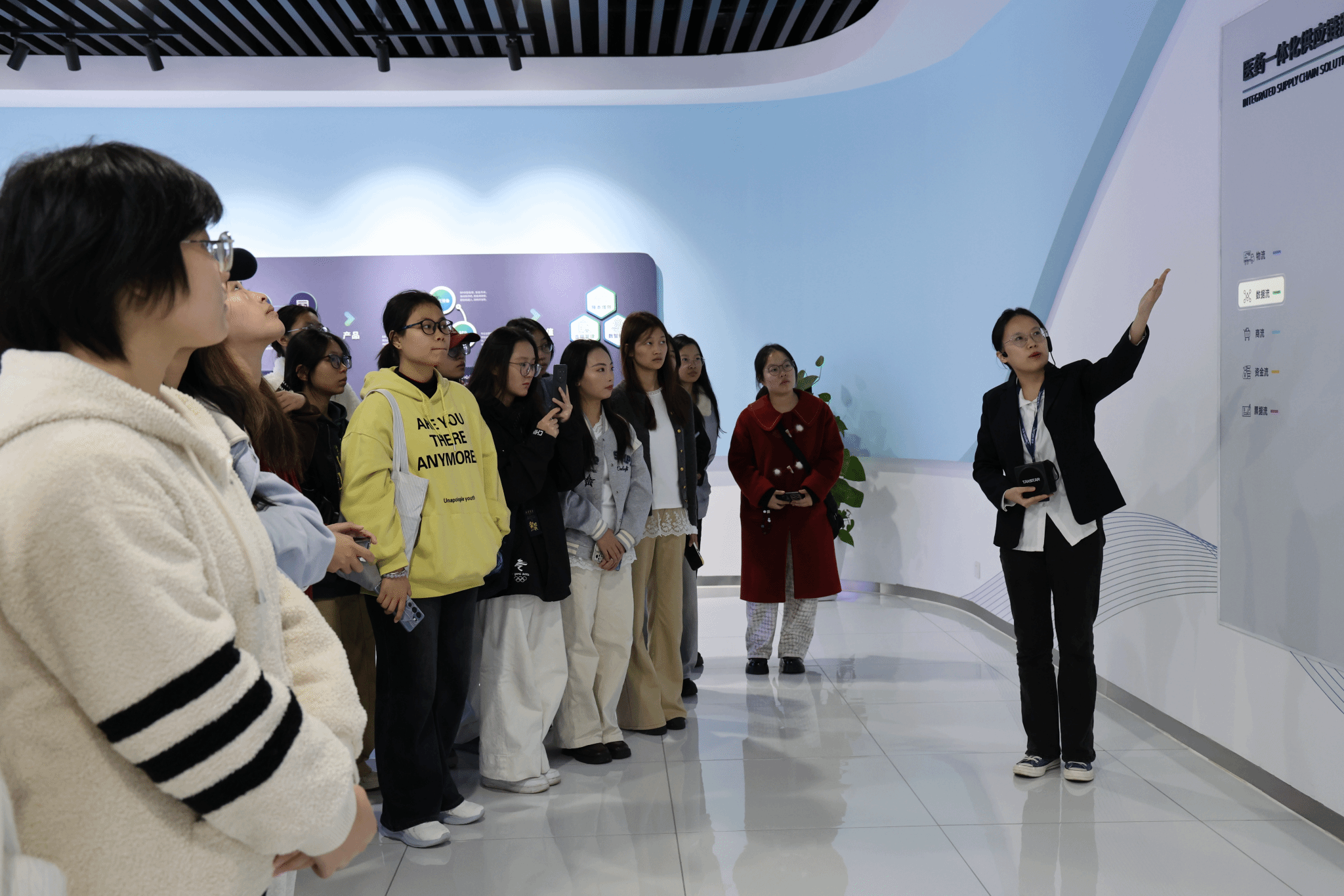 讲解员为学生们深度剖析公司的医疗运作模式。她详细介绍了德荣医疗从采购、仓储到配送、销售的每一个环节,以及公司在供应链管理、质量控制等方面的独特优势。学生们听得全神贯注,不时低头记录关键信息,对德荣医疗的运作模式有了更加全面和深入的认识。