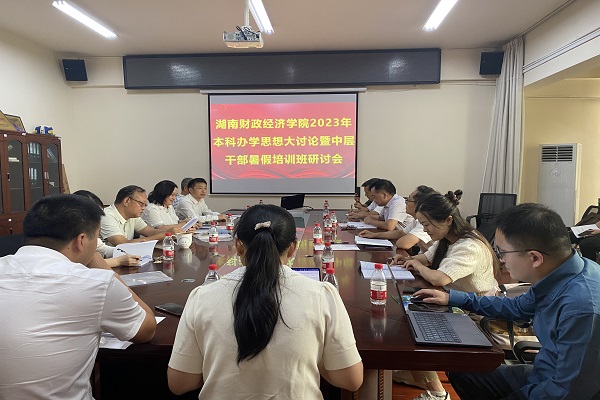 (本网讯)8月30日下午,工商管理学院在办公楼414-1会议室召开湖南财政经济学院本科办学思想大讨论暨中层干部培训班分组研讨会。学院领导班子全体成员、学校相关部门负责人及学院教师代表参加了会议。学院院长杨鹏主...