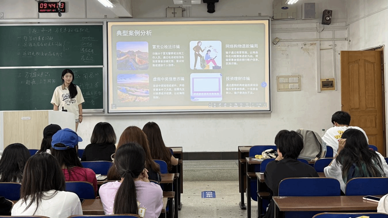 案例剖析:戳破诈骗套路真相。为让学生更直观地认识诈骗危害,各班利用多媒体资源深化教育内容。通过播放反诈宣传视频与展示图文并茂的PPT,详细解析了当前电信网络诈骗的常见手法与演变特征。例如:利用求职心理的刷单兼职诈骗、以利诱为饵的中奖诈骗、以及伪造权威身份的冒充公检法诈骗等。辅导员结合近期高校真实案例(如学生轻信“高薪兼职”受骗事件),进行了深入浅出的分析。鲜活案例使同学们深刻认识到诈骗危害,掌握了从细节识别骗局的方法。