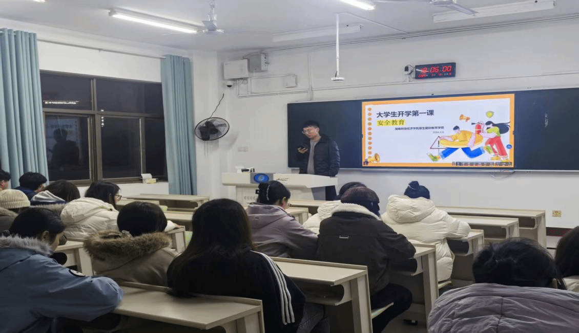 春启新程,安全为先。为进一步强化学生安全防范意识,提升自我保护能力,筑牢校园安全防线,2026年3月8日,湖南财政经济学院厚生国际教育学院组织全院各班级集中开展“大学生安全第一课”主题教育班会,引导全体学子以安全、有序、饱满的状态迎接新学期,为青春成长保驾护航。本次班会由各班级辅导员主持,全院学生全员参与。