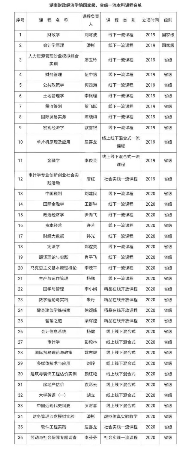 新湖南客户端3月3日讯(通讯员 刘莹)近日,湖南省教育厅公布了2020年度省级一流本科课程认定名单,湖南财政经济学院《中国税制》等24门课程认定为2020 年“湖南省省级一流本科课程”。其中,线下一流本科课程9...