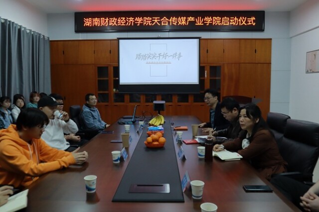 新湖南客户端5月12日讯(通讯员 申洁鑫 摄影:申洁鑫 周志望)4月29日,湖南财政经济学院天合传媒产业学院启动仪式在湖南财政经济学院办公楼817会议室举行。该学院由湖南财政经济学院人文与艺术学院与湖南天合智...
