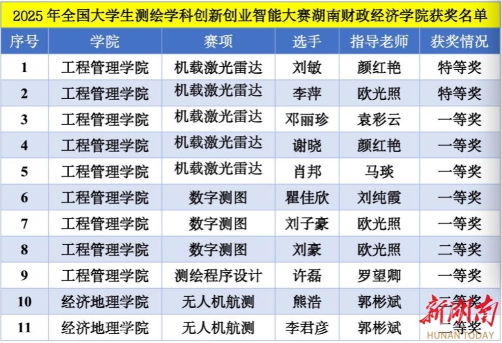 新湖南:湖南财院学子获全国大学生测绘学科创新创业智能大赛11个奖项