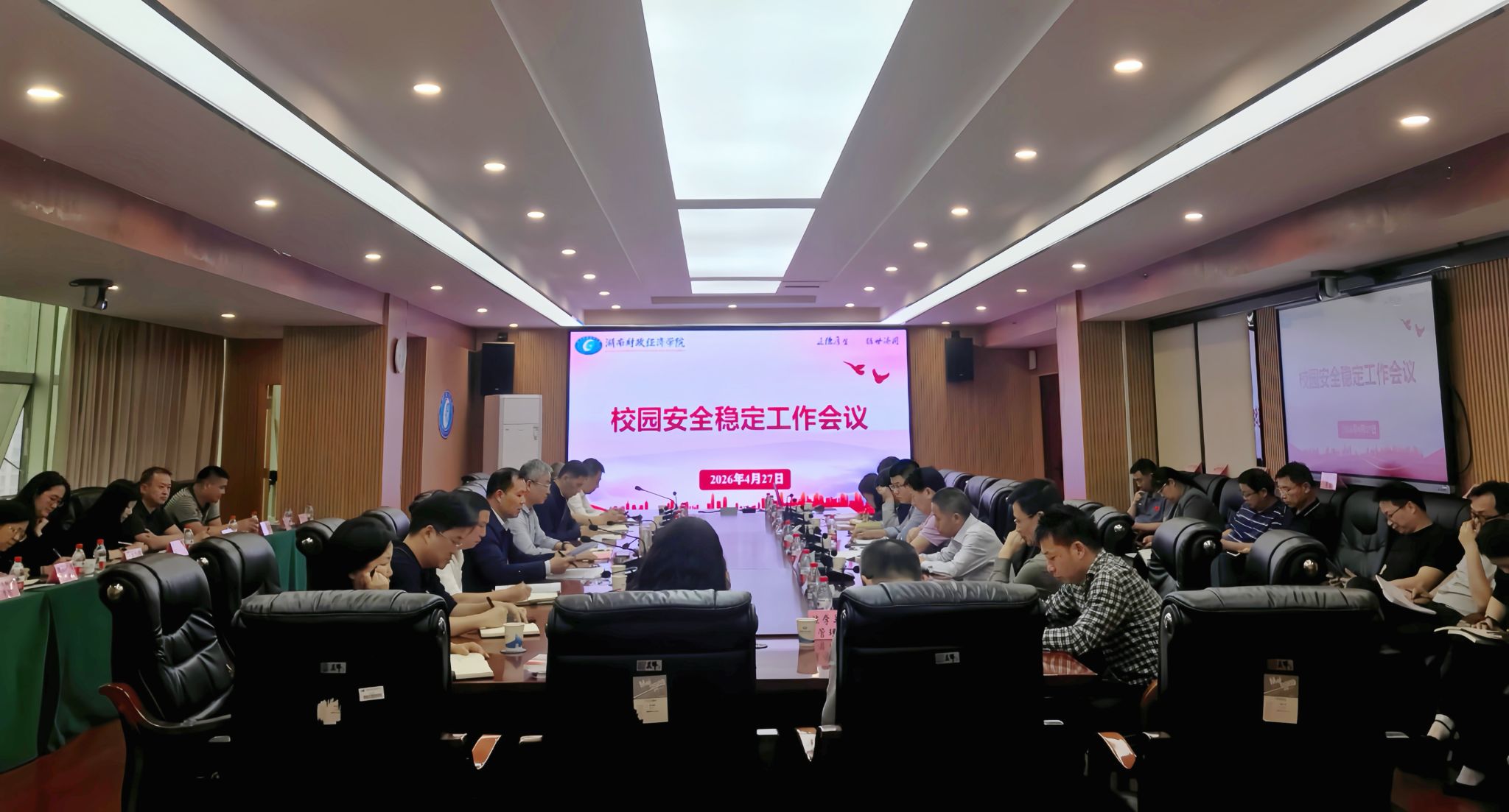 (本网讯)4月27日,学校召开校园安全稳定工作会议。校党委副书记刘钟理主持会议并提出工作要求。宣传部、统战部、保卫部、学生工作部、发展规划处、资产管理处、后勤处、基建处、实验教学与网络技术中心、图书馆主要负责人,各二级党组织负责人、各二级学院院长参加会议。会议现场会议传达了全省高校安全稳定工作部署会议精神及省安委办关于做好“五一”期间安全防范工作的文件精神,全面分析了近期我校在安全管理、风险排查、隐患整改等方面存在的突出问题和防控整改情况,...