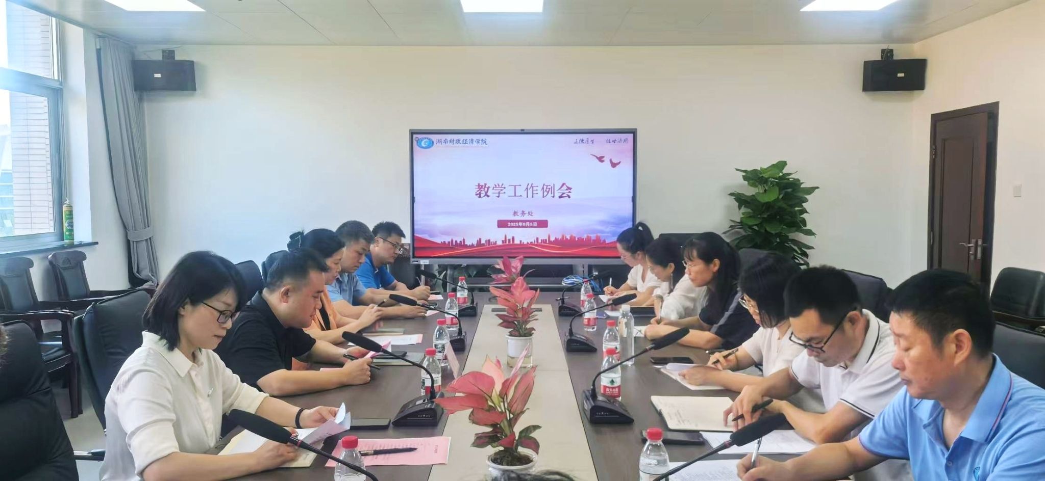 (本网讯)9月5日上午,我校在515会议室召开新学期第一次教学工作例会。副校长潘爱民主持会议,教务处、教学质量监控与评估中心负责人及各二级学院分管教学工作的副院长参加会议。会议现场会上,教务处相关负责人汇报了开学前教学准备、教研教改、教材建设、实践教学等工作情况,通报了模拟评估整体情况并分析存在的问题,提出了下一步工作计划。教学质量监控与评估中心负责人就审核评估后续工作提出具体任务安排和时间节点要求。潘爱民肯定了前期教学准备和模拟评估工作取得的成效,...