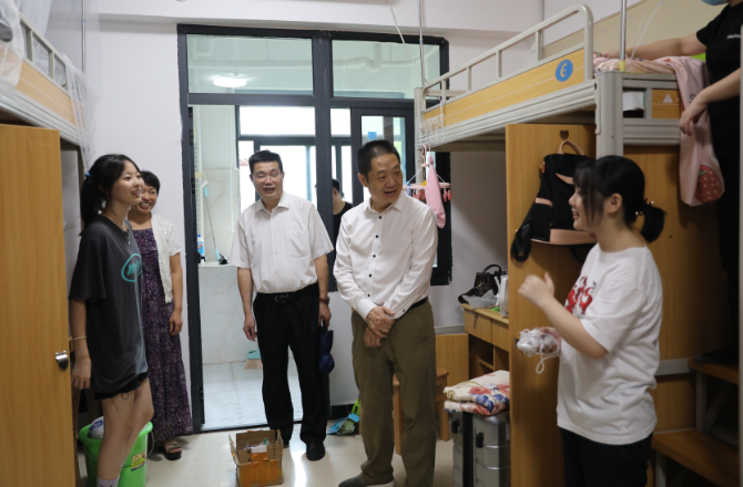 (本网讯)为进一步深化平安校园建设,全力维护学校开学初安全稳定局面,9月15日下午,党委书记肖湘愚,副校长王焕清,党委委员、宣传统战部部长陈灿军带领相关部门负责人,深入检查、调研校园交通安全、消防安全、食...