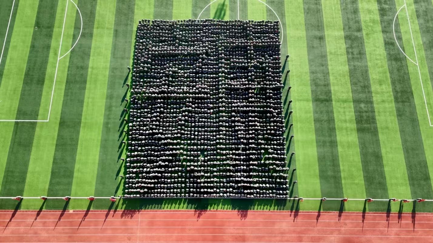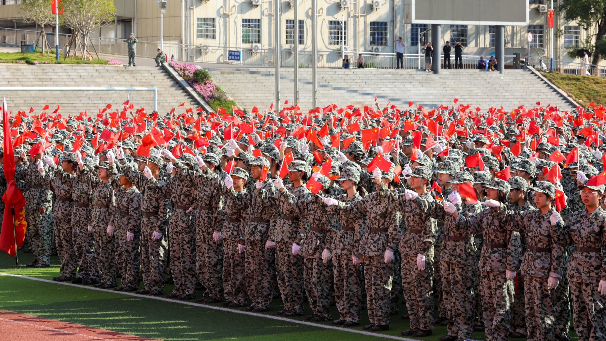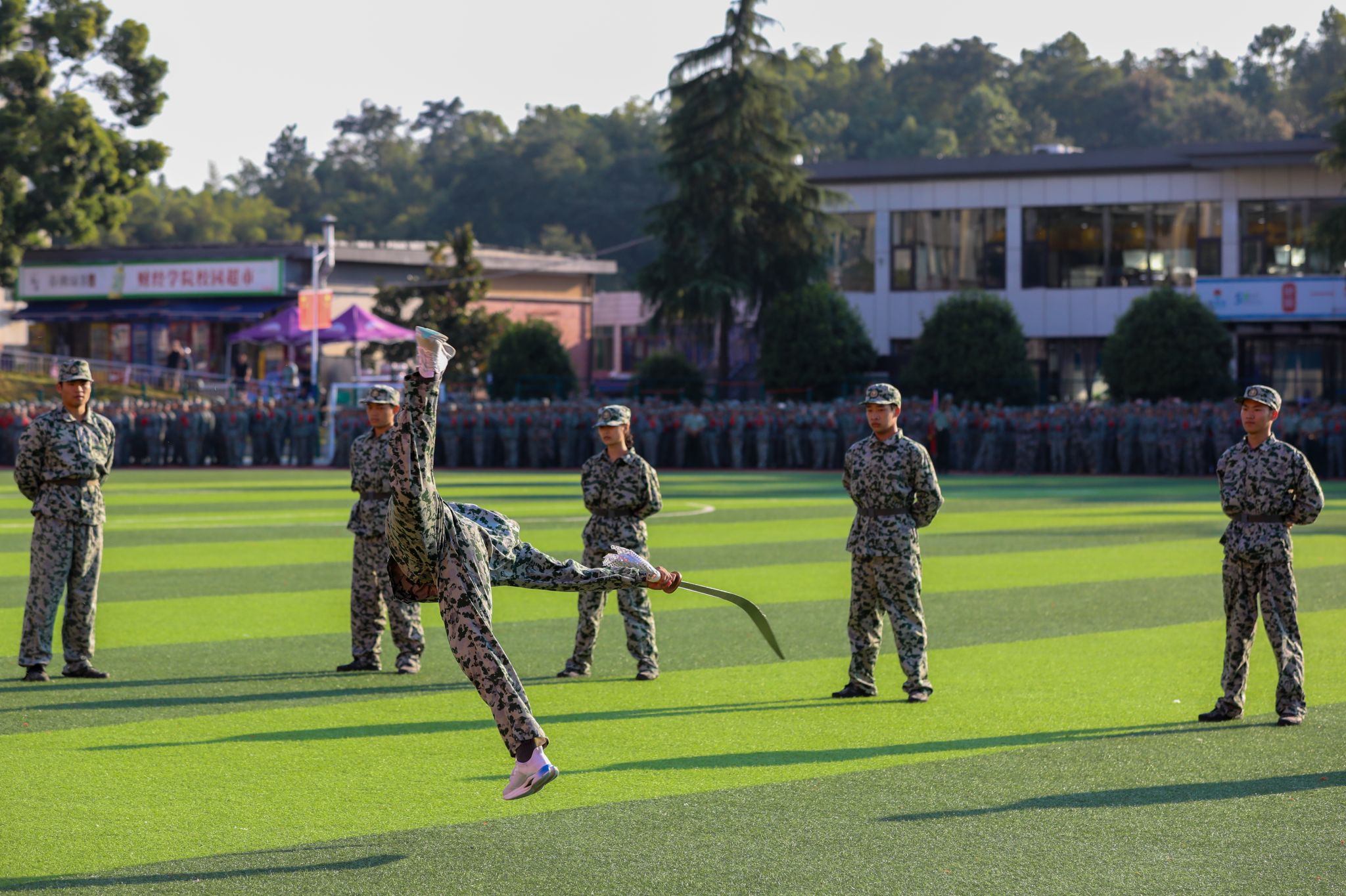 (本网讯)金秋九月,燃情湖财。9月30日上午,学校2024级学生军训总结表彰大会在雷锋校区田径场举行,6000余名学子身着戎装,以最饱满的热情汇报军训成果。