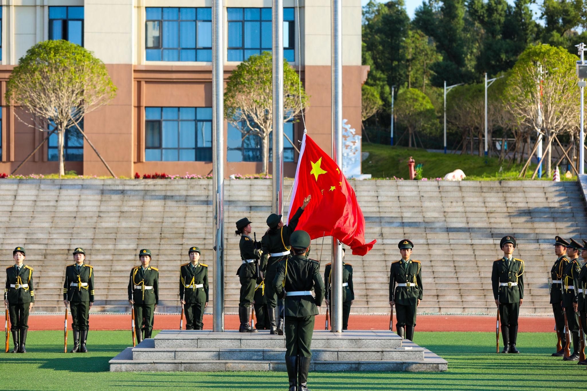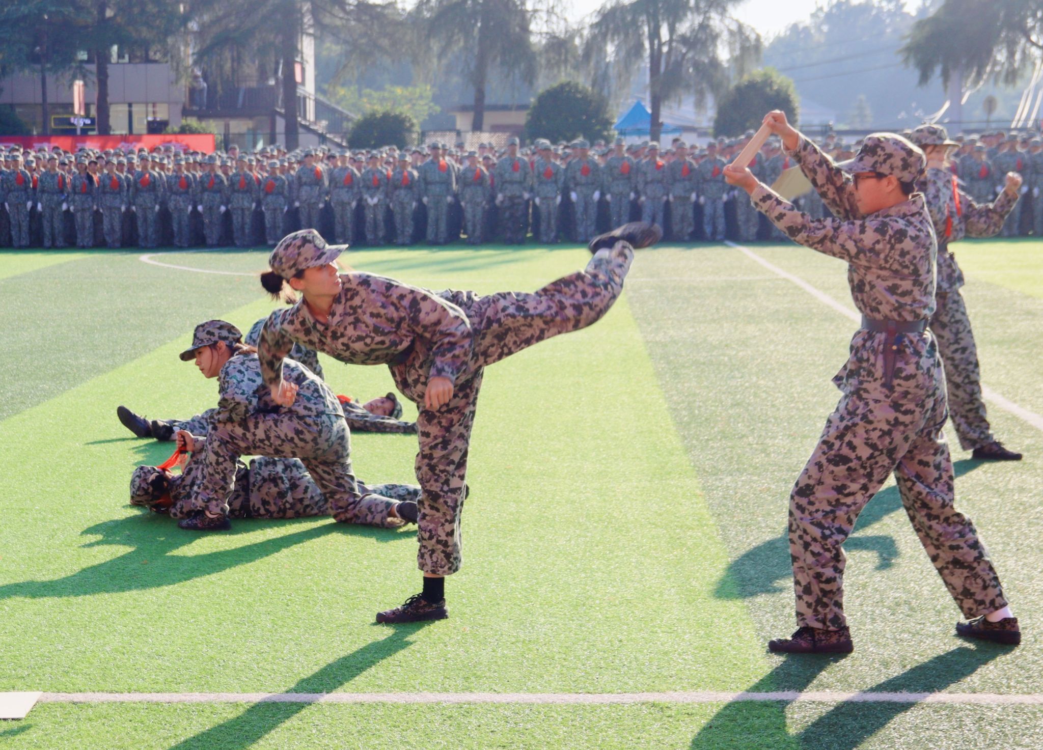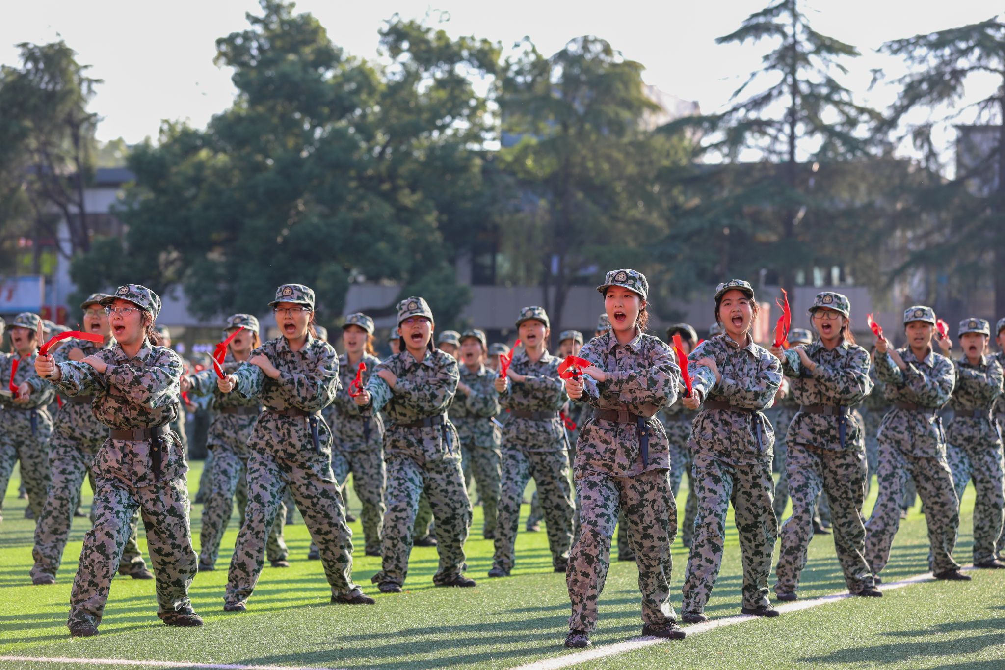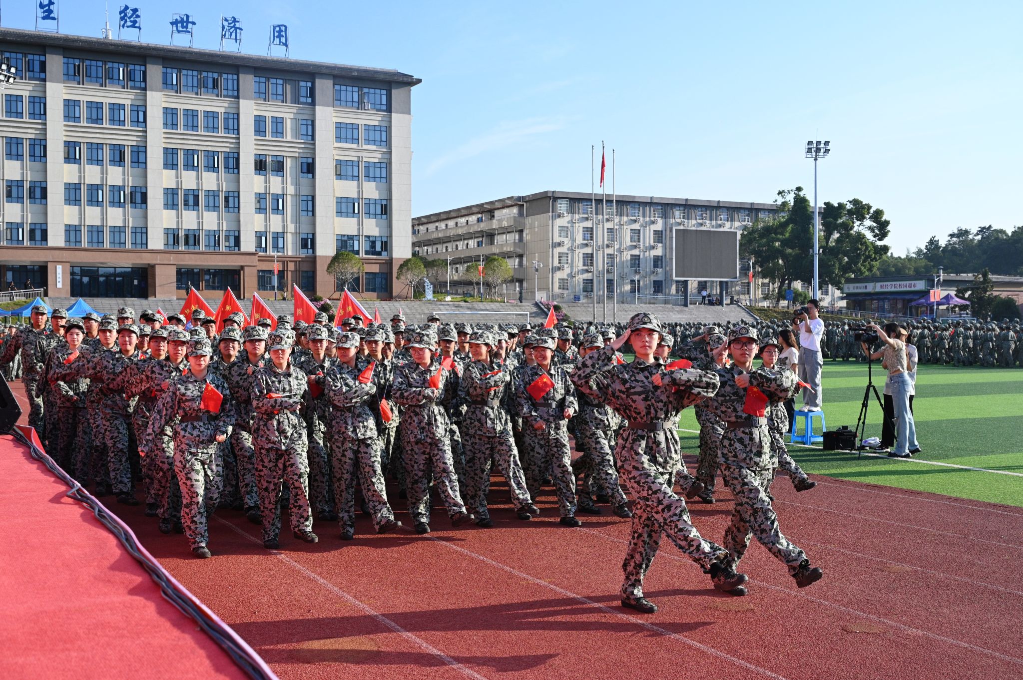 2024级学生军训总结表彰大会在全体师生齐唱《歌唱祖国》的嘹亮歌声中圆满结束。