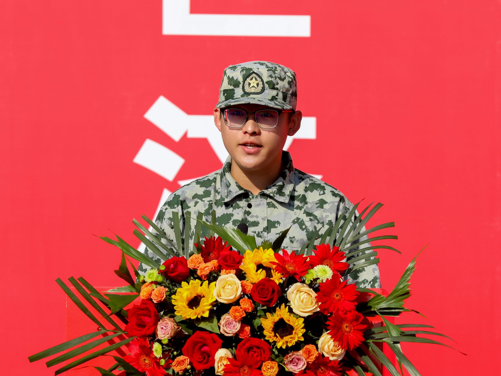 参训学生代表、会计学院2024级会计八班陈翰汇报了军训的体验和收获,表示将把从军训中磨砺出的好作风融入日常生活和学习,践行“正德厚生 经世济用”校训精神,用实际行动报效祖国。