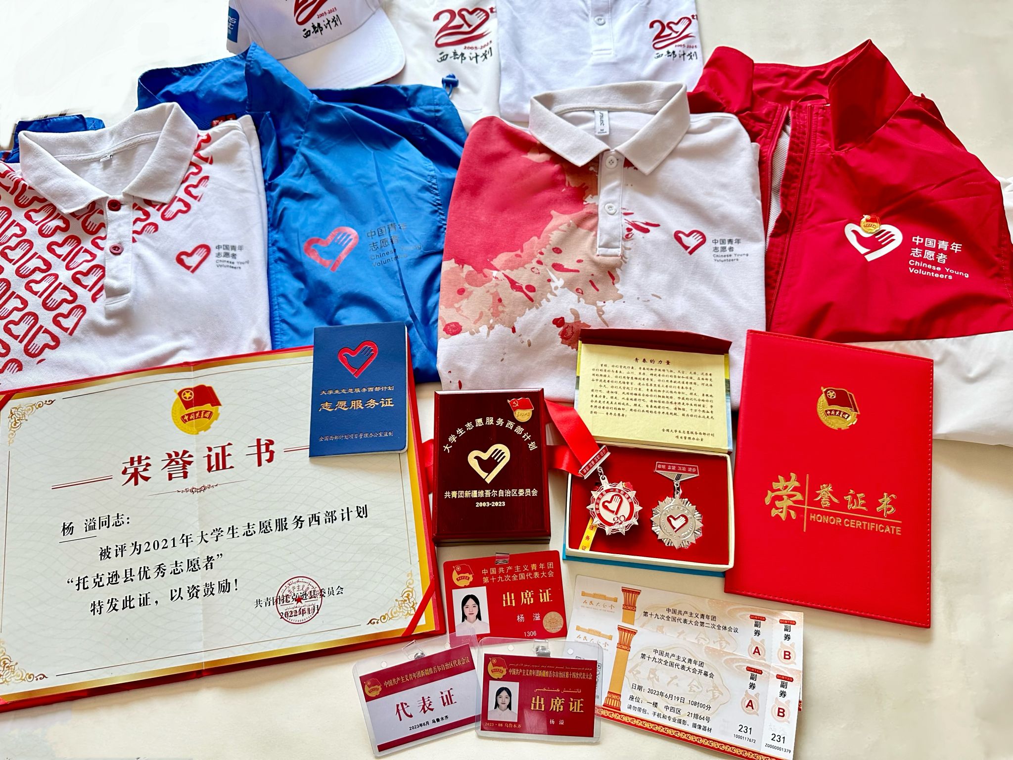 在葡萄沟畔的时光里,杨溢完成了三次华丽蜕变:从面对公文格式手足无措的“职场小白”,成长为独当一面筹备县团代会的业务骨干;从面对镜头羞涩的新人,化身为助力乡村振兴、推介大美新疆的青春主播;在“尊老孝亲”“生态保护”“爱心助学”等志愿服务中,她始终冲锋在前。当“全国大学生志愿服务西部计划优秀志愿者”的荣誉、共青团十九大新疆代表团成员的邀请函纷至沓来时,她深刻体会到,母校“正德厚生 经世济用”的校训早已在丝绸古道上生根发芽,浇灌出理想之花。