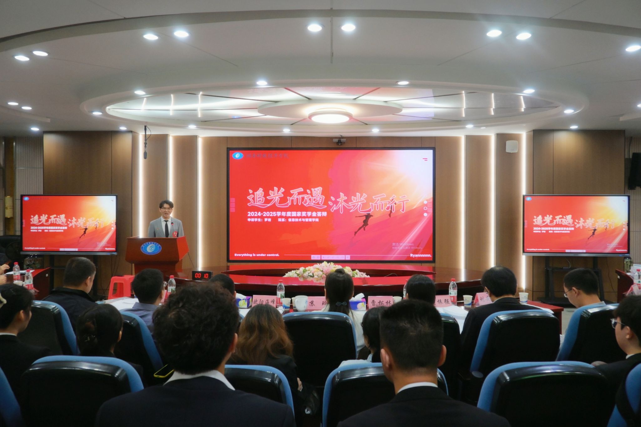 会议就本学年国家奖学金评选工作的整体安排与差额评审方案作了说明。63名候选人依次进行现场陈述,从学业成绩、科研创新、社会实践等方面展现了各自的优异表现与成长历程。