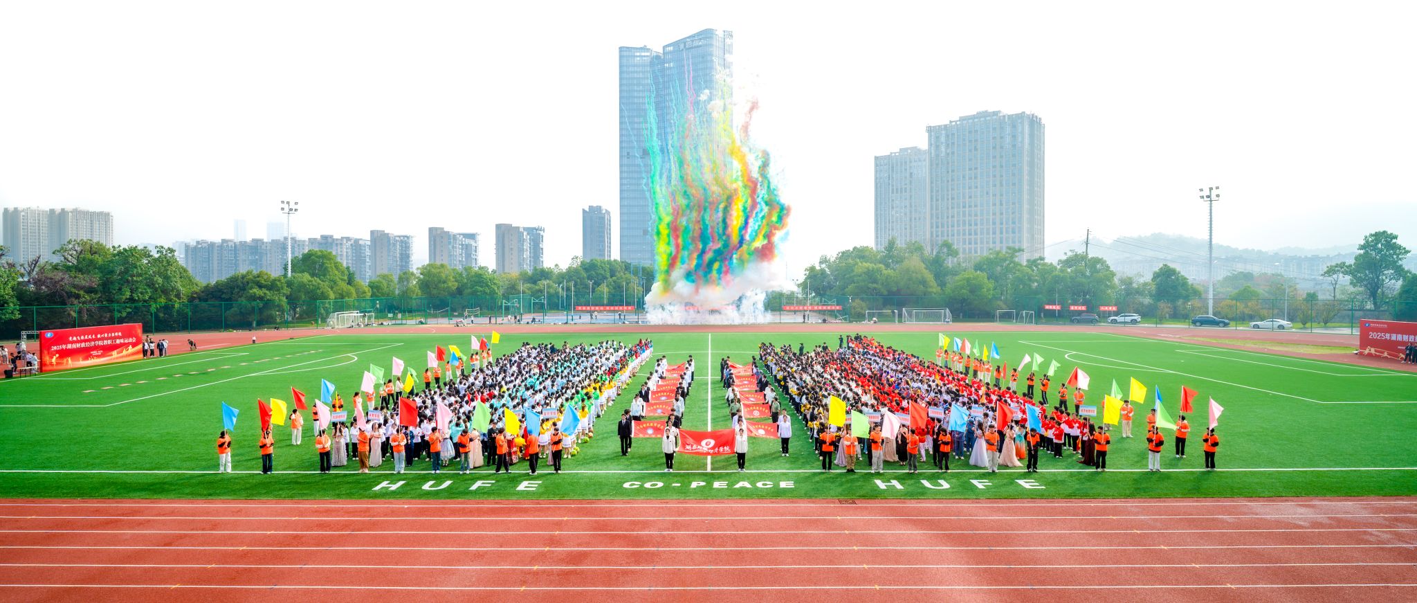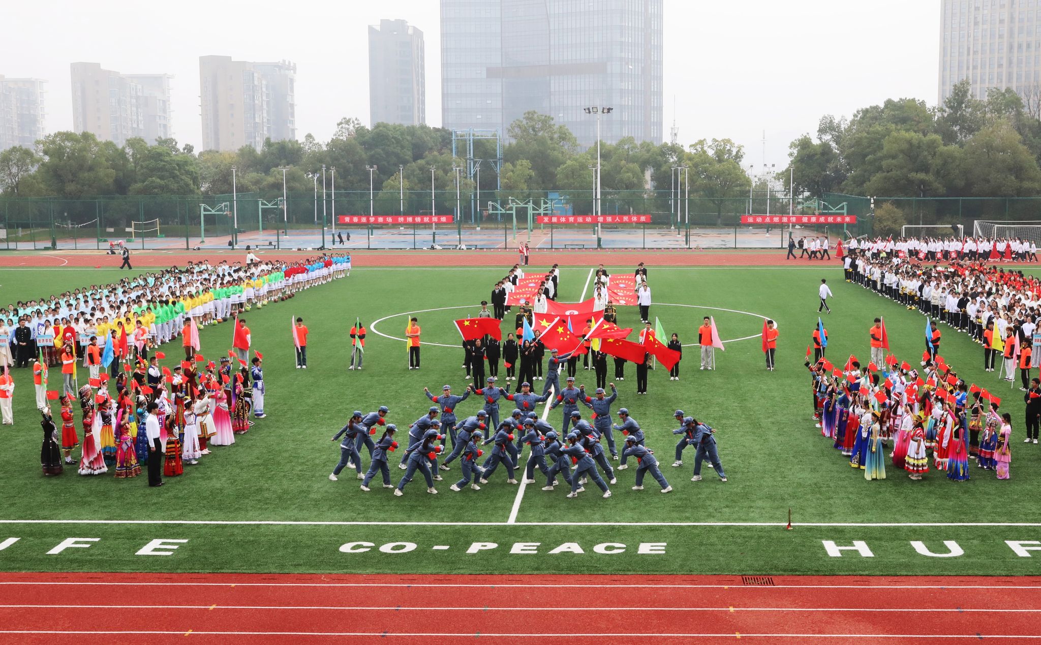 (本网讯)10月31日至11月1日,我校运动会在主校区田径场举行。近三千名师生在焕新赛场上同台竞技,以拼搏精神展现体育魅力。校领导、各单位负责人出席开幕式。校党委书记易棉阳致开幕辞并宣布开幕,副校长潘爱民主持开幕式。