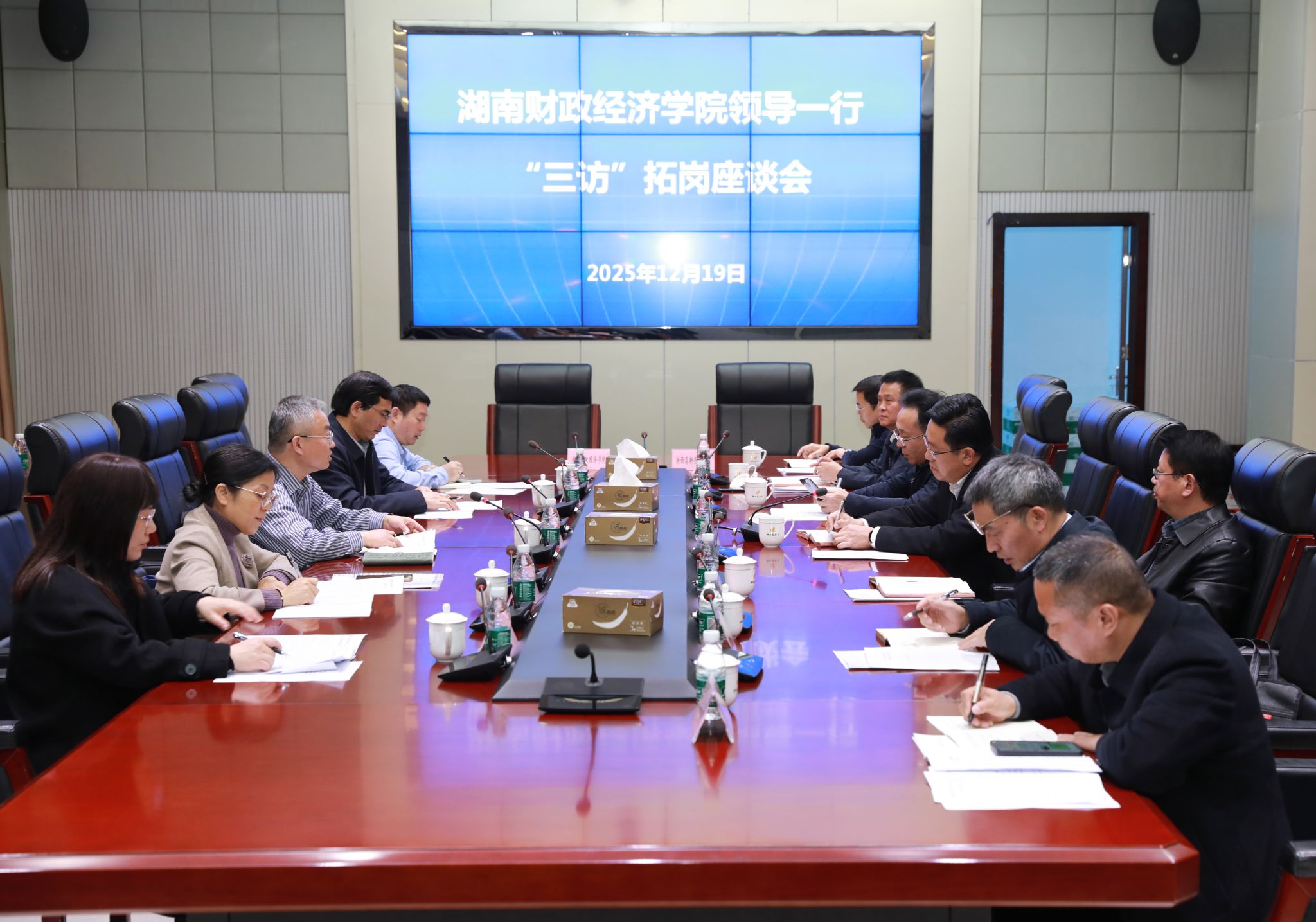 (本网讯)12月18日至19日,副校长刘钟理率经济地理学院、招生与就业指导中心负责人赴湘西土家族苗族自治州,开展“访市(县)、访园、访企”拓岗促就业专项活动。湘西州副州长车世忠、人民政府副秘书长谢翔宇、科技局局长向文波、高新区管委会主任戴晓军,泸溪县副县长陈济礽、高新区管委会主任易勤以及相关部门、企业负责人陪同调研或参加座谈。