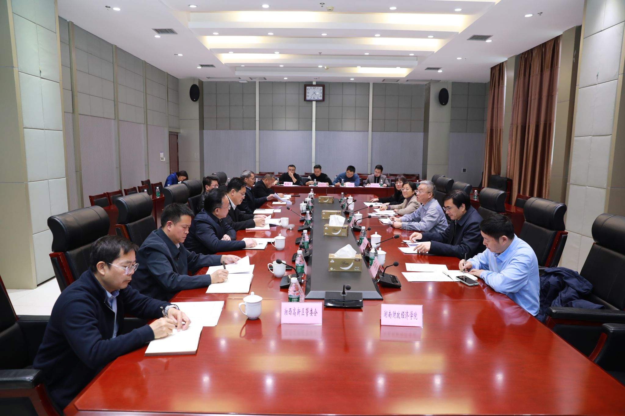 座谈会上,刘钟理介绍了学校的专业特色、人才培养模式以及毕业生就业方向,表示通过校地、校企之间的积极合作,必将实现共赢互惠的目标。谢翔宇对调研团队表示热烈欢迎,希望双方持续加强联系,共同推动地方经济社会高质量发展。湘西州高新区管委会、人社局、科技局等单位负责人分别介绍了高新区发展现状、人才引进政策及创新创业扶持措施。
