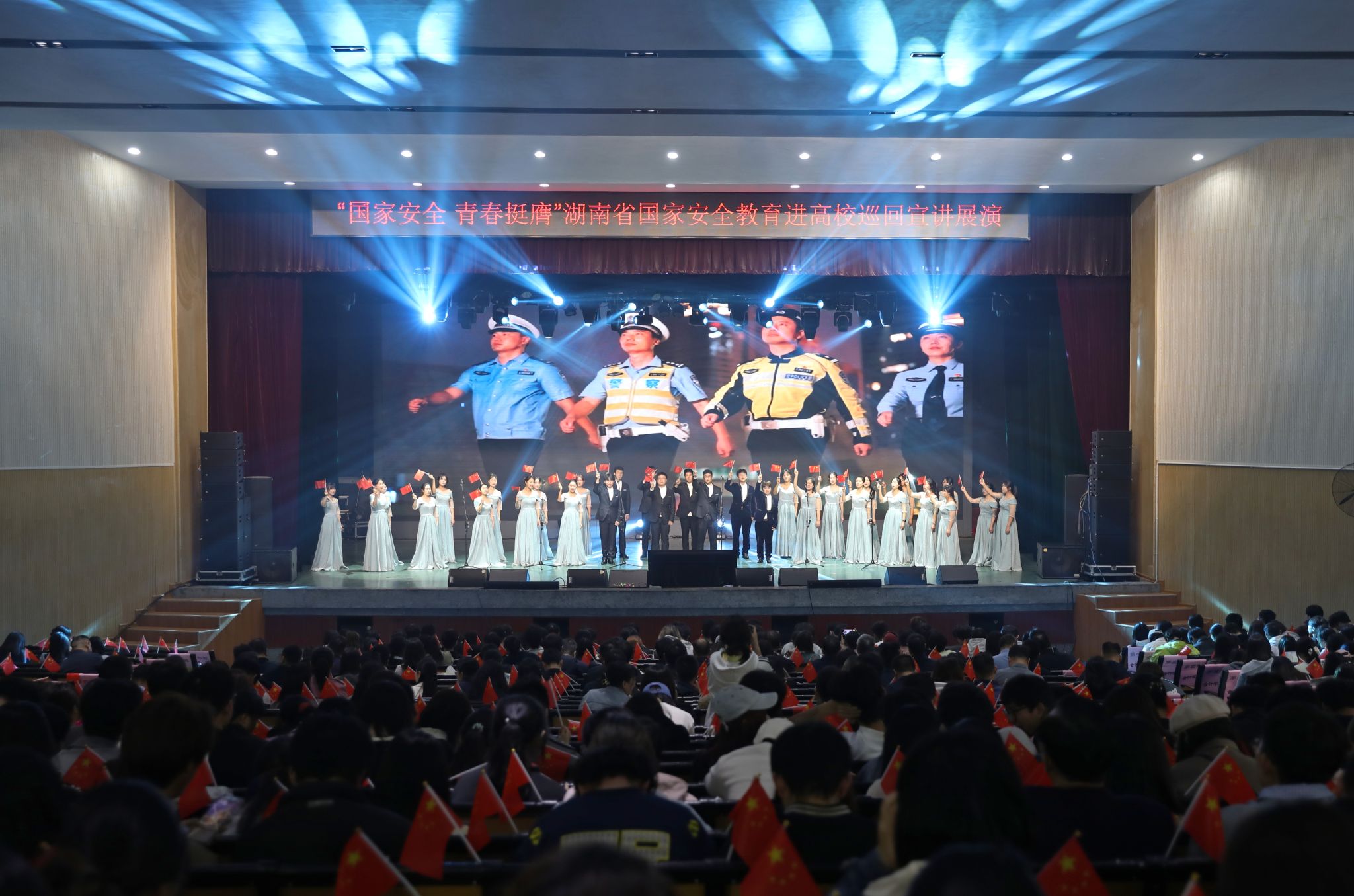 (本网讯)为迎接第11个全民国家安全教育日,进一步增强高校师生国家安全意识和素养,4月14日,以“国家安全 青春挺膺”为主题的湖南省国家安全教育进高校巡回宣讲展演第3站在我校举行。