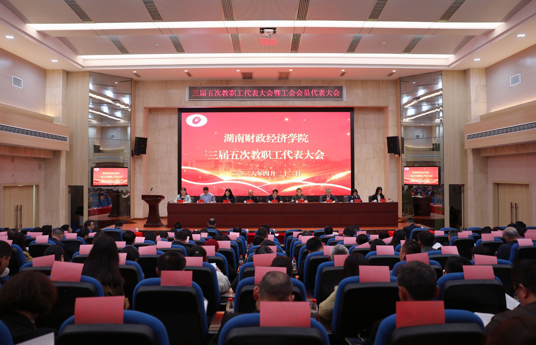 大会书面审议了2025年财务预算执行情况和2026年财务预算草案报告、《湖南财政经济学院章程(修订)》、《湖南财政经济学院“十五五”事业发展规划》、《湖南财政经济学院高校教师系列(含实验技术)专业技术职称申报评审条件(修订)》、三届四次教代会提案办理情况报告、三届五次教代会提案征集情况报告及工会经费审查报告。