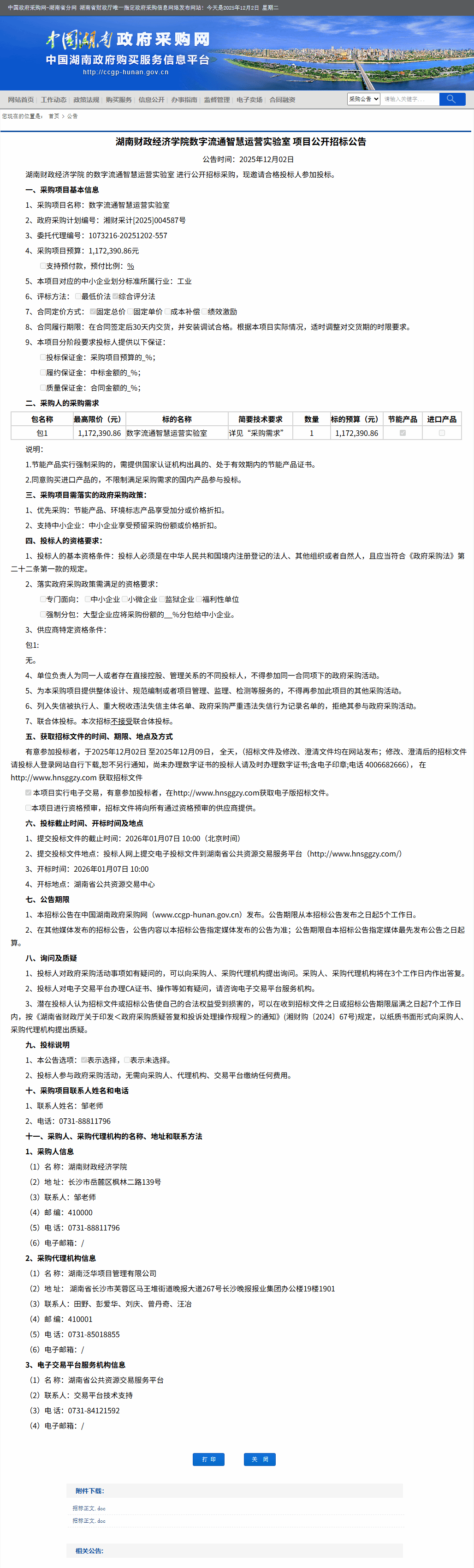 湖南省政府采购网:湖南财政经济学院数字流通智慧运营实验室项目公开招标公告