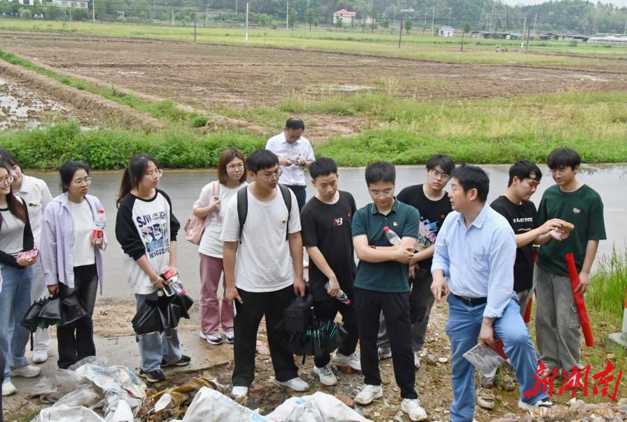 在欣赏秀丽风景的同时,产业模式、屋场建设、生态环境地质也是师生了解的重点,科普研学的序幕随之正式拉开。无论是途中所见的稻田控制灌排系统还是奇特地质地貌,副院长苏昌贵都能由小及大,科普背后蕴藏的专业知识,引导师生分析研究,启发大家的调研兴趣和深度思考,用实际行动践行研学活动主旨。
