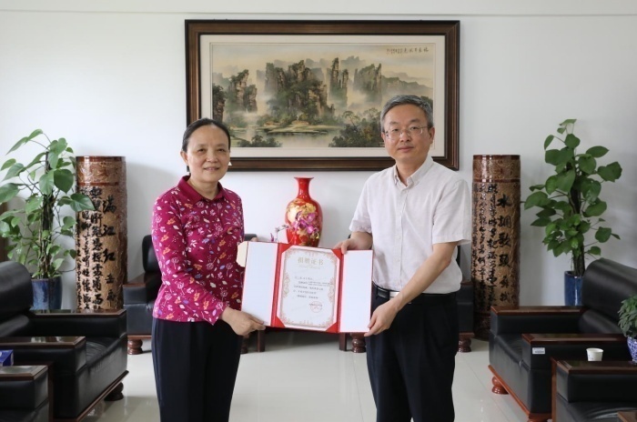 捐赠仪式在学校办公楼七楼接待室举行,在学校办学90周年纪念活动筹备工作顾问杨安娜、就业创业指导服务中心主任凌飞、党政办副主任王萱、校友会彭芳老师的见证下,副校长刘钟理代表学校向熊崇煦的重外孙女和邵健的女儿颁发了捐赠证书。刘钟理表示,老物件的捐赠既是一次庄严的交接,更是一堂生动的校史课。追本溯源,不忘本,我们要传承弘扬创始人、老校友的奋斗精神和情怀,汲取奋勇前行力量,自觉担当民族复兴大任和服务地方经济文化建设的时代重任,创新、求实、奉献,全力推动学校高质量发展。这些老物件承载着老一辈的印记与回忆,见证了时代的过往,学校一定会好好珍藏。