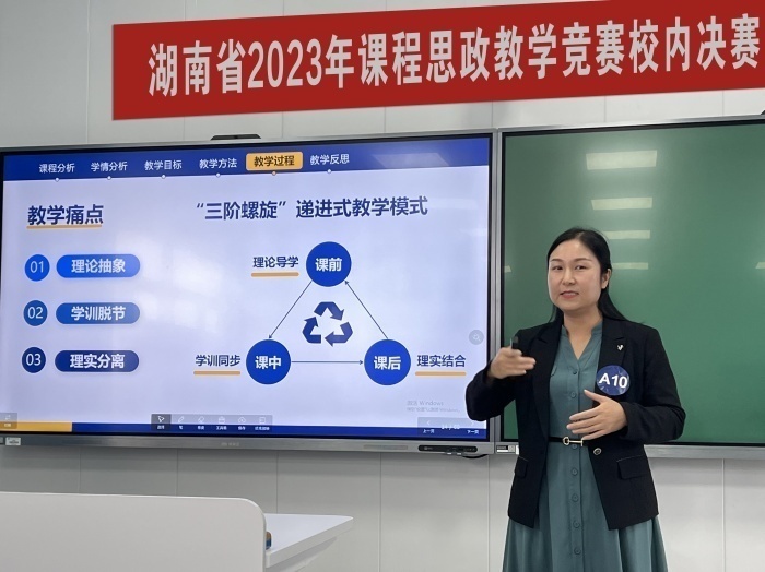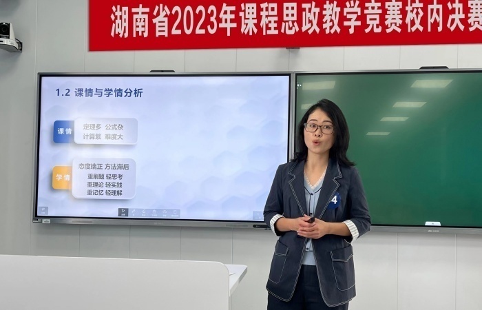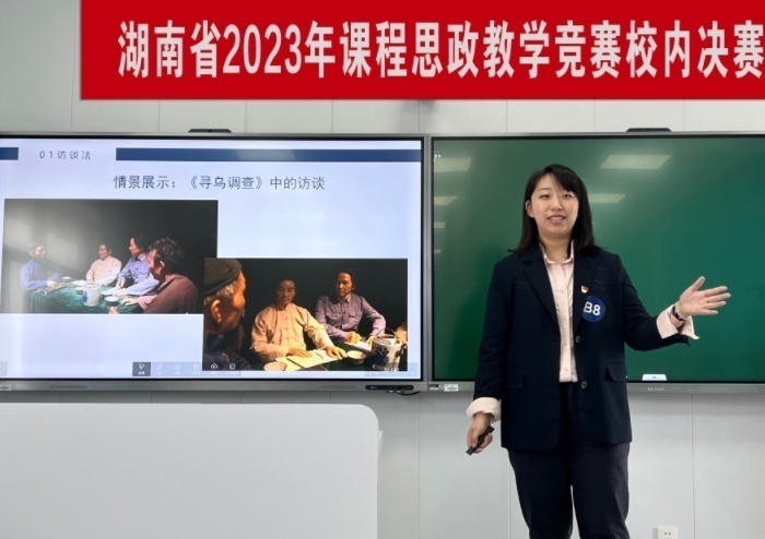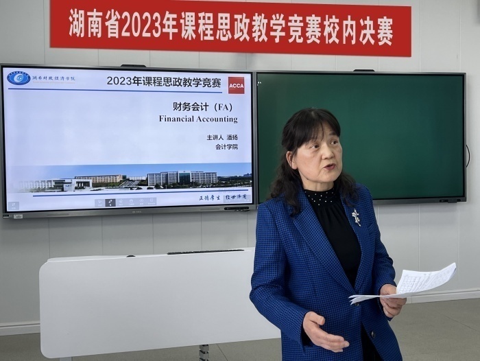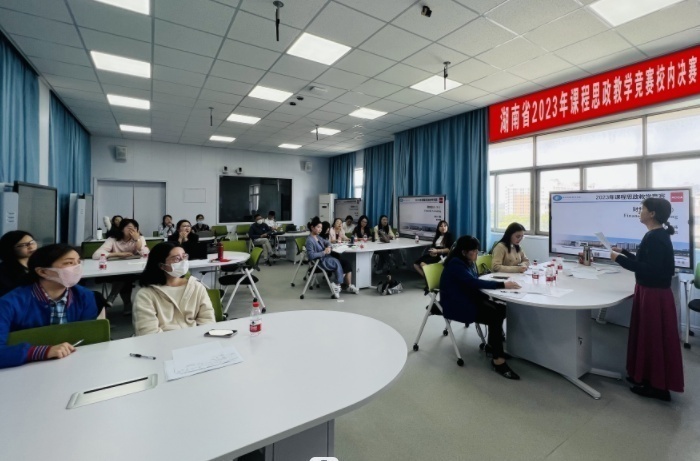 近日,湖南财政经济学院在二教学楼2617智慧教室举行湖南省2023年课程思政教学竞赛校内决赛。经过各教学单位层层选拔,25位专任教师晋级决赛,同台竞技,为全校教师呈现了一场精彩纷呈的教学盛宴。比赛由教务处副处长张晓鹏主持。