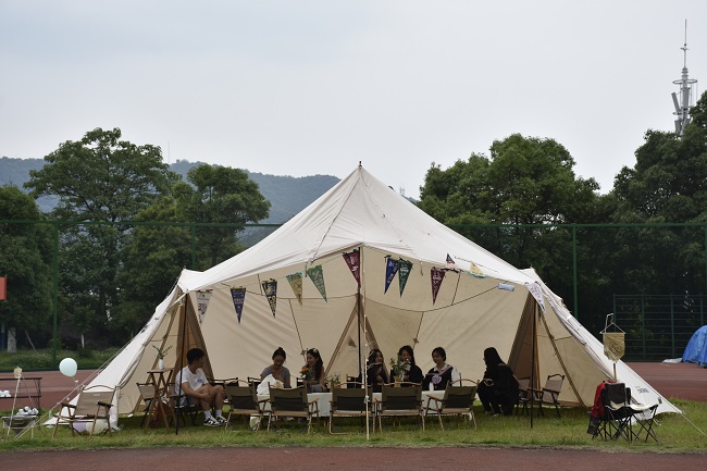 5月21日,湖南财政经济学院第二届营地帐篷节在主校区田径场举行。活动设计了趣味运动会、节目表演、户外观影、文创集市等环节,带给学生快乐的成长感受。
