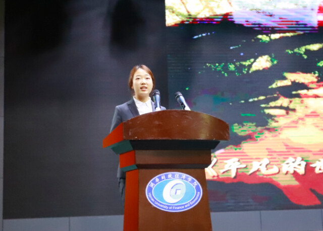 在优秀事迹宣讲环节,来自湖南财政经济学院以及湖南工商大学、长沙医学院、长沙环境保护职业技术学院、湖南理工学院、湘潭大学的6位国家奖学金获得者依次上台宣讲。湖南财政经济学院郭希文同学分享了自己如何在学习中提高自己、如何做到工作与学习相平衡,实现效率最大化的学习感悟;湖南工商大学蒋珊珊同学讲述了自己考上华中师范大学政治学专业研究生、积极投身社会实践的心路历程;长沙医学院李淅同学曾获得中国大学生“自强之星”等荣誉称号,以第一作者发表论文3篇,累计志愿服务时间超过700小时,他畅谈了自己“勇攀高峰”的成长感悟;长沙环境保护职业技术学院康琴同学通过专升本免试就读,积极主动,敢于探索,学习成绩名列前茅,她认为人需要突破自己,不断进取,终将会达到理想的彼岸;湖南理工学院美术与设计学院王艺纯同学曾担任校书法协会会长、美术学专业负责人等多项职务,是岳阳市青年美术家协会会员,她坚持“为知识而学习”的态度,认为在大学中要自己把握现在、创造未来;湘潭大学外国语学院廖智超同学讲述了自己立志投身祖国外交事业,被保送至北京外国语大学中英同声传译专业的励志经历。