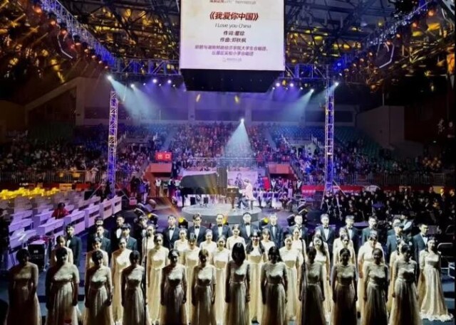 郎朗与湖南财政经济学院大学生合唱团共同演绎《我爱你,中国》 曹松林/摄