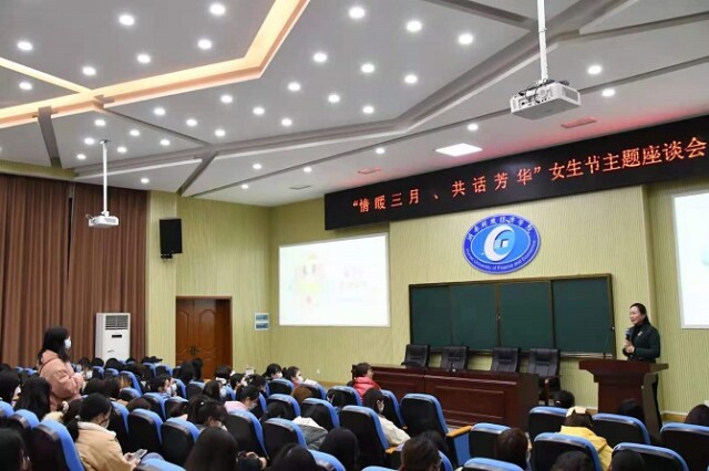 新湖南客户端3月11日讯(通讯员 陈艳 朱颖 摄影:谭演)3月8日晚,一场别开生面的“女生节”座谈会在湖南财政经济学院二教学楼2J02学术报告厅举行,湖南财政经济学院副校长苏玲、校团委全体老师以及各二级学院的女生代表与会,畅谈当代女大学生青春梦想。