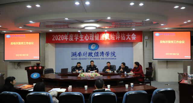 新湖南客户端2月1日讯(通讯员 尹湘东)1月21日上午,湖南财政经济学院在视频会议室举办“反电诈”宣传讲座,邀请在一线从事反电诈工作的专家为学校学工系统工作人员宣讲防范电信网络诈骗专题知识。活动由保卫处处长欧阳海峰主持。