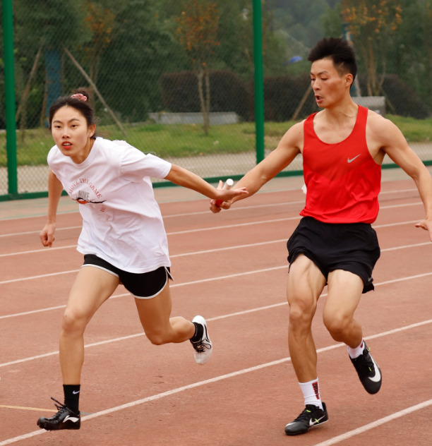 男子组4×100混合接力赛的赛场上,运动员默契地在自己接棒的位置就位。“预备,跑”,一道道身影飞奔而出,体育学院选手代表遥遥领先,为下一棒接力赢得了先机,会计学院选手代表也紧随其后。当第四棒冲向终点时,运动场上加油呐喊声不断。最终,体育学院以50’63”的成绩打破校运会历年纪录。赛后记者采访体育学院代表队时,他们表示,虽然每天重心在知识学习上,但仍会在课余时间坚持锻炼,强健体魄,一定将争取在明年运动会上再创新高。