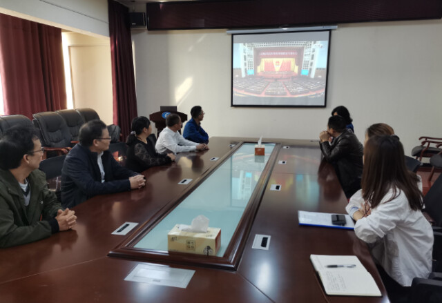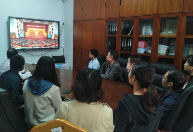 湖南财政经济学院党委理论学习中心组成员在办公楼715会议室集中收看。各部门、各二级学院组织师生集中收看了大会直播。