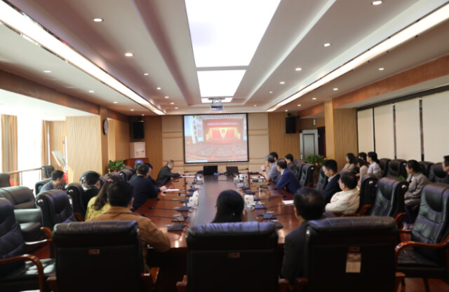 湖南财政经济学院党委理论学习中心组成员在会议室收看大会直播 汪洋/摄