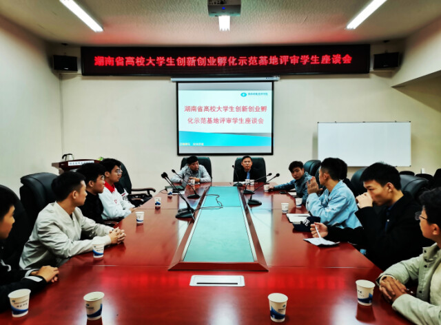 汇报会在办公楼715会议室举行,汇报会由刘茂盛主持。汇报会上,肖湘愚代表学校对专家组的到来表示热烈欢迎,并介绍了学校的办学情况和育人成效。他表示,学校高度重视创新创业工作,始终坚持以习近平新时代中国特色社会主义思想为指引,深入贯彻落实《国务院办公厅关于深化高等学校创新创业教育改革的实施意见》以及“大众创业、万众创新”的国家发展战略,将创新创业工作放在服务学校发展战略全局的高度统筹推进,希望专家组成员能给学校创新创业工作多提宝贵意见,进一步提升湖南财政经济学院双创工作水平。刘建民从强化基地保障、深化基地建设、优化基地服务、孵化成效显著四个方面汇报了学校孵化基地建设及成效。
