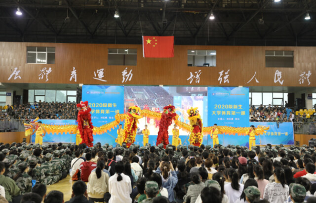 开课前,激情澎湃的龙狮表演、极富青春活力的爵士啦啦操和街舞啦啦操将现场气氛推向高潮,使全场新生得到了传统体育文化与现代体育文化的熏陶,感受到了体育的巨大魅力。