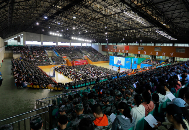 新湖南客户端10月10日讯(通讯员 彭华 摄影:马海彬 汪洋)为落实习近平总书记在全国教育大会上的重要讲话精神,正确领会“文明其精神、野蛮其体魄”的内涵,9月29日上午,湖南财政经济学院校长刘长庚在体育馆为4200多名2020级新生上了一堂生动的“大学体育第一课”。活动由湖南财政经济学院体育学院院长刘伟主持,湖南大学等12所兄弟院校体育学院领导,学校相关职能部门、二级学院领导及体育学院全体老师参加活动。
