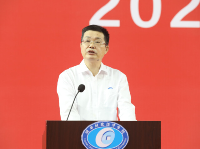 在热烈的掌声中,湖南财政经济学院校长刘长庚以“坚定目标求卓越 全面发展创未来”为题发表致辞。他首先代表学校热烈欢迎2020级新生加入财院大家庭,并向辛勤培育他们的老师、家长致以诚挚的问候。他指出,我们所处的时代,正经历着百年未有之大变局;同学们生逢其时,也重任在肩。他希望2020级新生要志存高远、更要脚踏实地,要勤于学习、更要知行合一,要术业专攻、更要全面发展,牢记“正德厚生、经世济用”的校训精神,立德修身、坚守初心,勤奋学习、全面发展,知行合一、守正创新,追求卓越、砥砺前行,创造属于自己的美好未来。