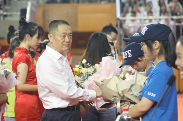 在全场师生的见证下,肖湘愚、刘长庚亲手为当天年满18周岁的9名新生佩戴校徽并赠送鲜花,庆祝他们18岁成人生日、祝贺他们正式成为“财院人”。“能够被授予校徽,内心十分激动,更多的是荣幸与斗志,我对大学生活更为充满期待,我将更加努力学习为报效祖国,回报父母、学校与社会。”2020级信息技术与管理学院何佳说道。