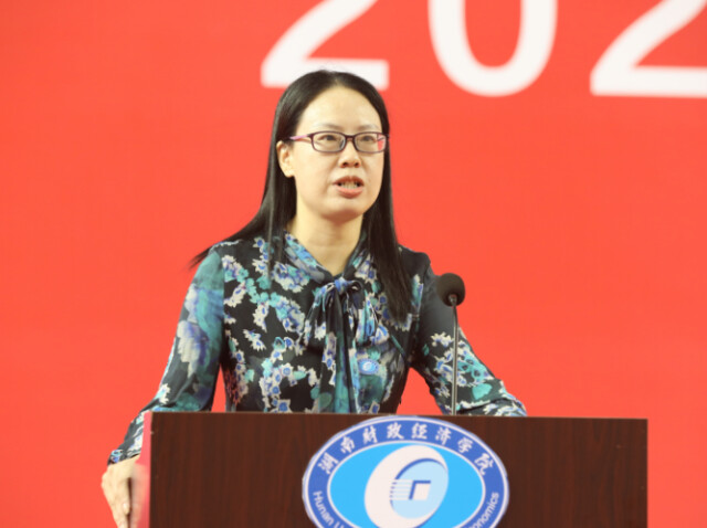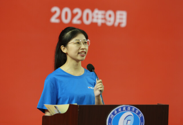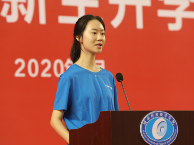 湖南财政经济学院2020级财务管理二班吴思雨作为新生代表发言。她为成为财院的一员而自豪,并表示,要将个人理想和国家发展结合起来,把个人成长发展融入到实现中华民族伟大复兴的中国梦进程中去,在服务国家和民族的事业中,实现自己的人生价值。