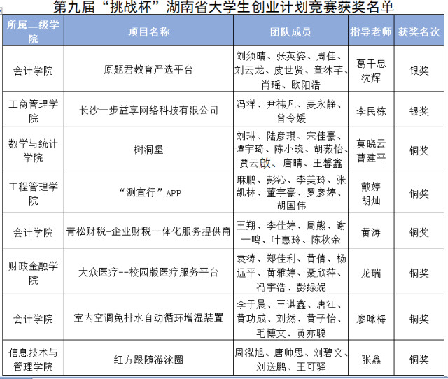 湖南日报·新湖南客户端8月19日讯(通讯员 朱颖)8月7日至8月10日,由团省委、省教育厅、省科协、省学联联合组织的第九届“挑战杯”湖南省大学生创业计划竞赛终审决赛在湖南信息学院举行,湖南财政经济学院参赛队伍荣获银奖2项、铜奖6项。