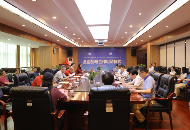 湖南日报·新湖南客户端7月22日讯(通讯员 祝子丽 摄影 何妍)7月13日,湖南财政经济学院和湖南中德安普大数据网络科技有限公司全面战略合作协议签约与揭牌仪式在湖南财政经济学院办公楼715室举行。中国商业会计学会会长谢志华、湖南省教育厅高教处处长曾力勤、湖南省财政厅会计处处长曾子兰等专家领导受邀参加。中德安普大数据网络科技有限公司董事长谭秋云,湖南财政经济学院党委书记肖湘愚,校长刘长庚,常务副校长刘寒波,副校长刘建民,党委委员、组织部部长王颖梅出席活动。活动由刘寒波主持。