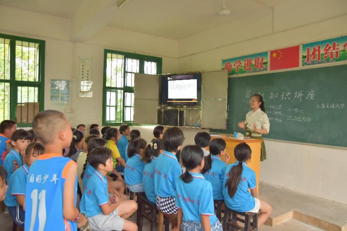 (本网讯)7月26日,我校信息技术与管理学院志愿队联合上海交通大学志愿者在郴州市宜章县沙坪村沙坪小学开展了一场急救知识讲座,旨在引领留守儿童增强安全意识,提升自护自救的能力。